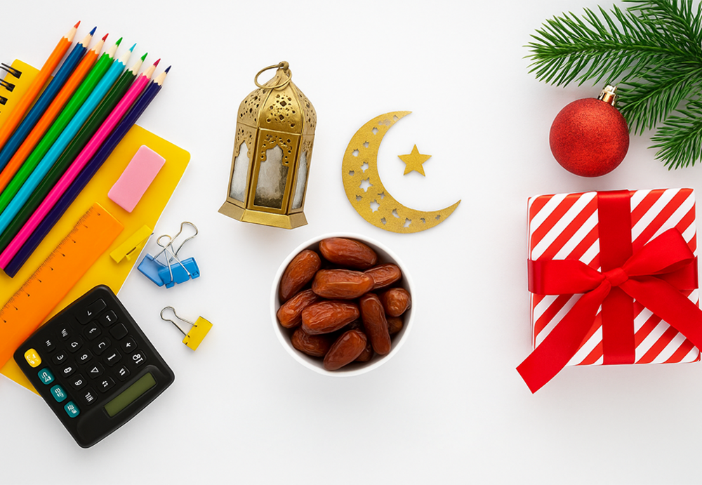 School supplies, Ramadan, Christmas, and more.